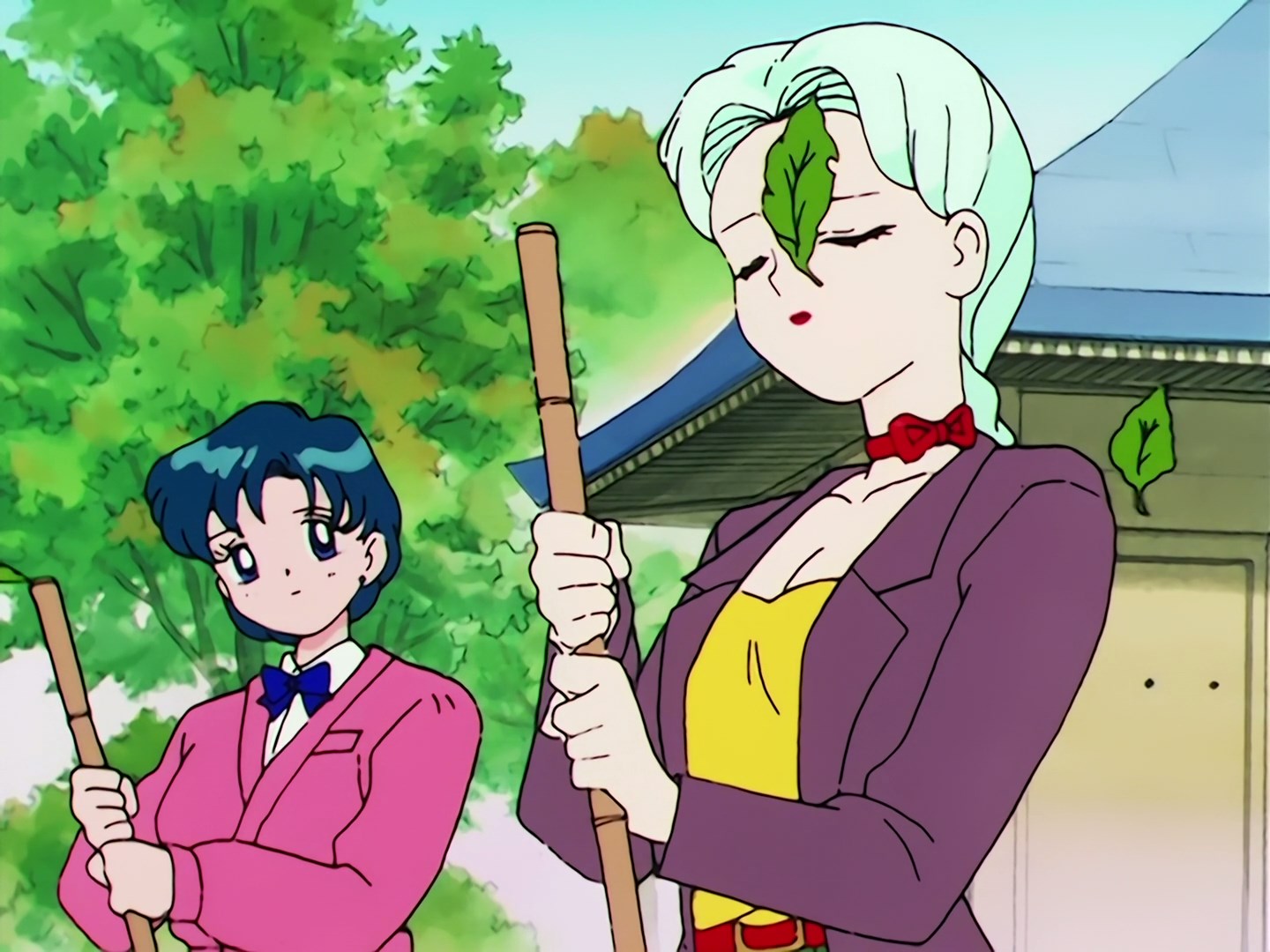 Dziewczyny razem z Chibiusą i dwiema siostrami Ayakashi przebywają w Świątyni Hikawa. Dziewczyny grabią liście przed świątynią, a Usagi krzyczy na Chibiusę, aby dziewczynka nie rozrzucała z powrotem liści, które przed chwilą zagrabiły.