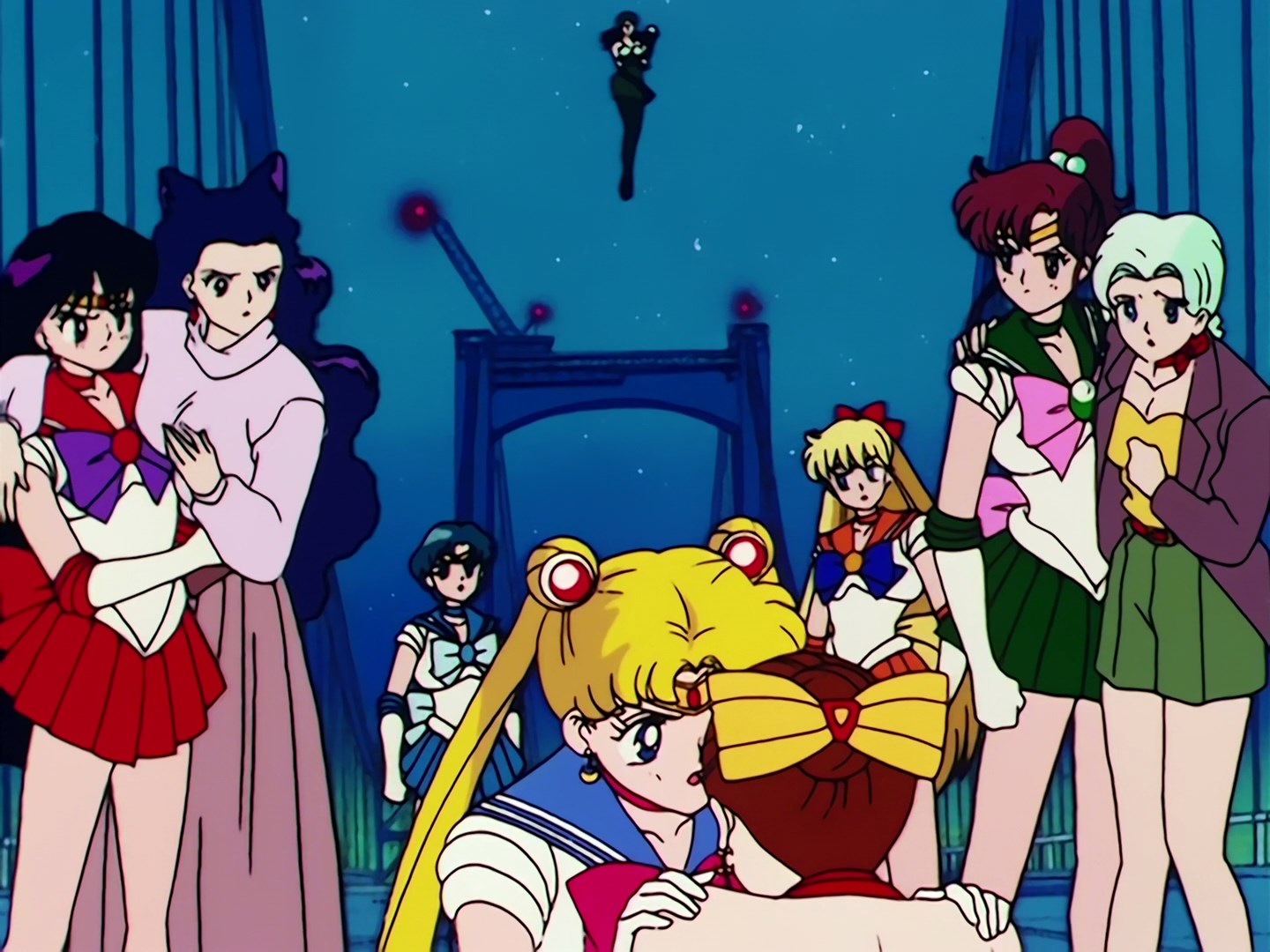 zaczyna ją wciągać do środka, ale z opresji ratuje ją Calaveras. Do pomocy przyłączają się wszystkie siostry. Sailor Moon jest przerażona, że dziura może je wszystkie wciągnąć. Na miejscu pojawia się Tuxedo Kamen, który zachęca ją,