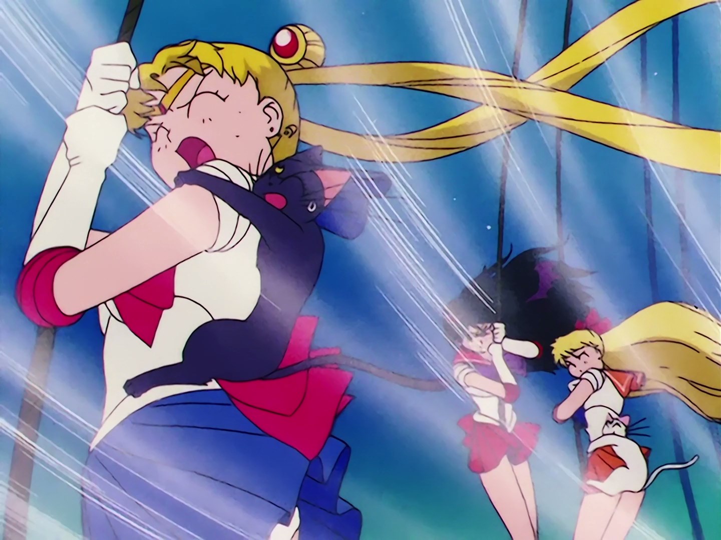 | Ataki użyte w odcinku: | Venus Love Me Chain! Burning Mandala! Moon Crystal Power! Mars Star Power! Mercury Star Power! Jupiter Star Power! Venus Star Power! Sailor Planet Power! Moon Crystal Power! (zaklęcie oczyszczające) Dark Thunder! Dark Power! |