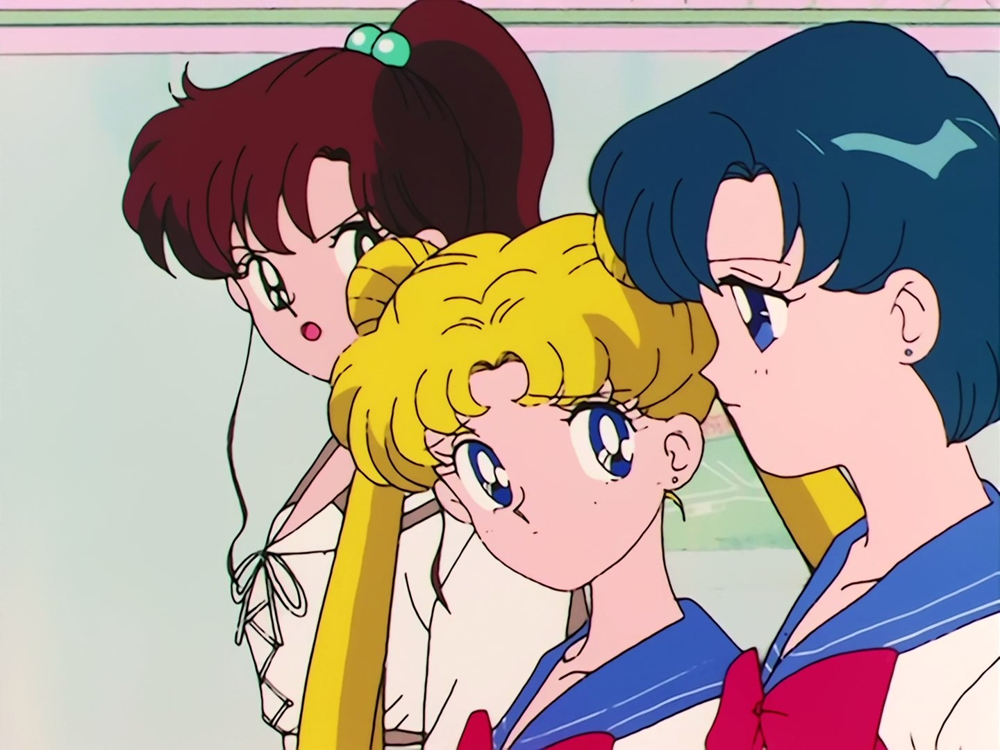 ataków na nią ze strony swoich przyjaciółek. Wojowniczka zakrywa uszy, aby nie słyszeć przykrych słów, a pozostałe wojowniczki próbują do niej podejść i sprawdzić czy wszystko z nią w porządku. Sailor Mercury odpycha od siebie przyjaciółki,