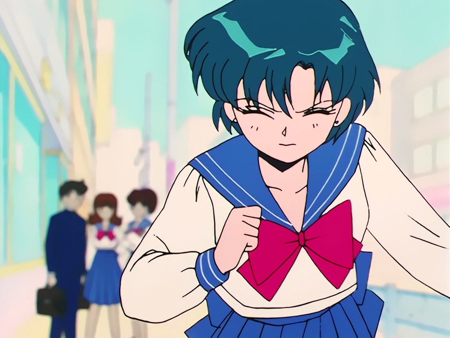 przyjaciółek mówiących jej, że niezbyt dobrze wygląda w stroju wojowniczki i to pewnie dlatego, że cały czas się uczy i nie ma czasu, aby zainteresować się modą. Sailor Mercury widzi również jak Sailor Venus mówi, że przechwala się