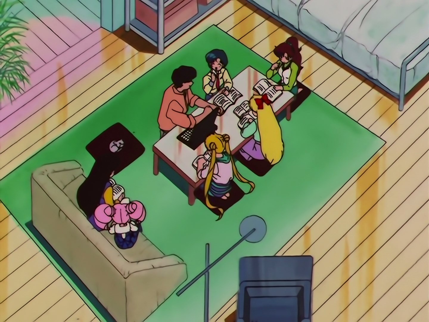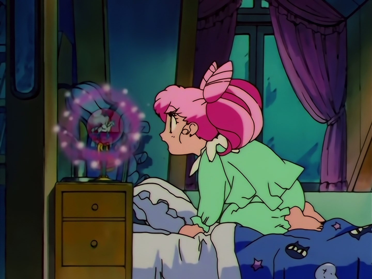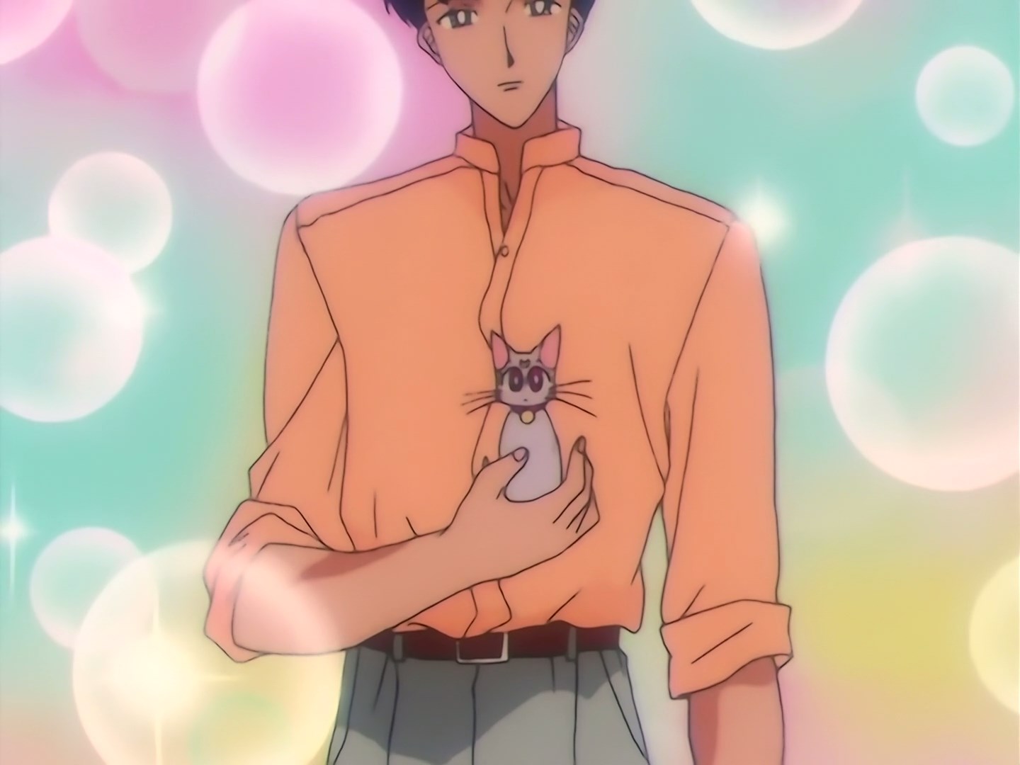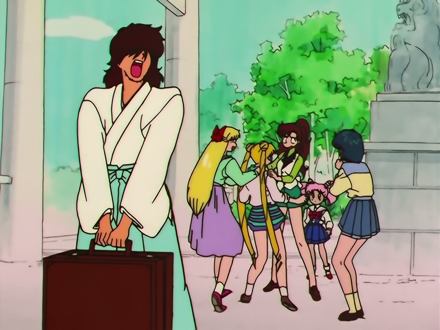 | Postacie występujące w odcinku: | Mamoru, Ami, Usagi, Rei, Makoto, Minako, Chibiusa, Diana, Tigers Eye, Fish Eye, Hawks Eye, Zirconia, dziadek Rei, Yuuichirou, Pegaz, Mizugeiko - Lemur. |