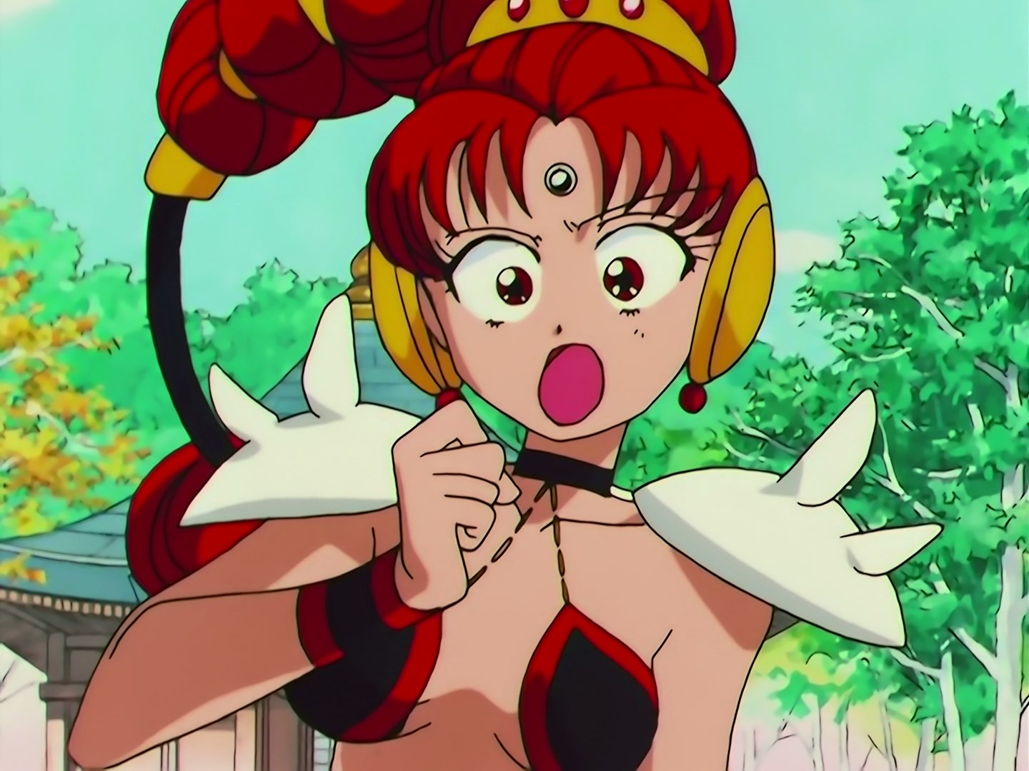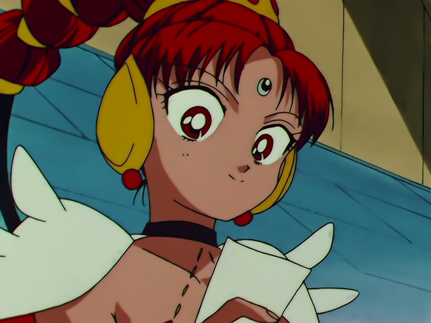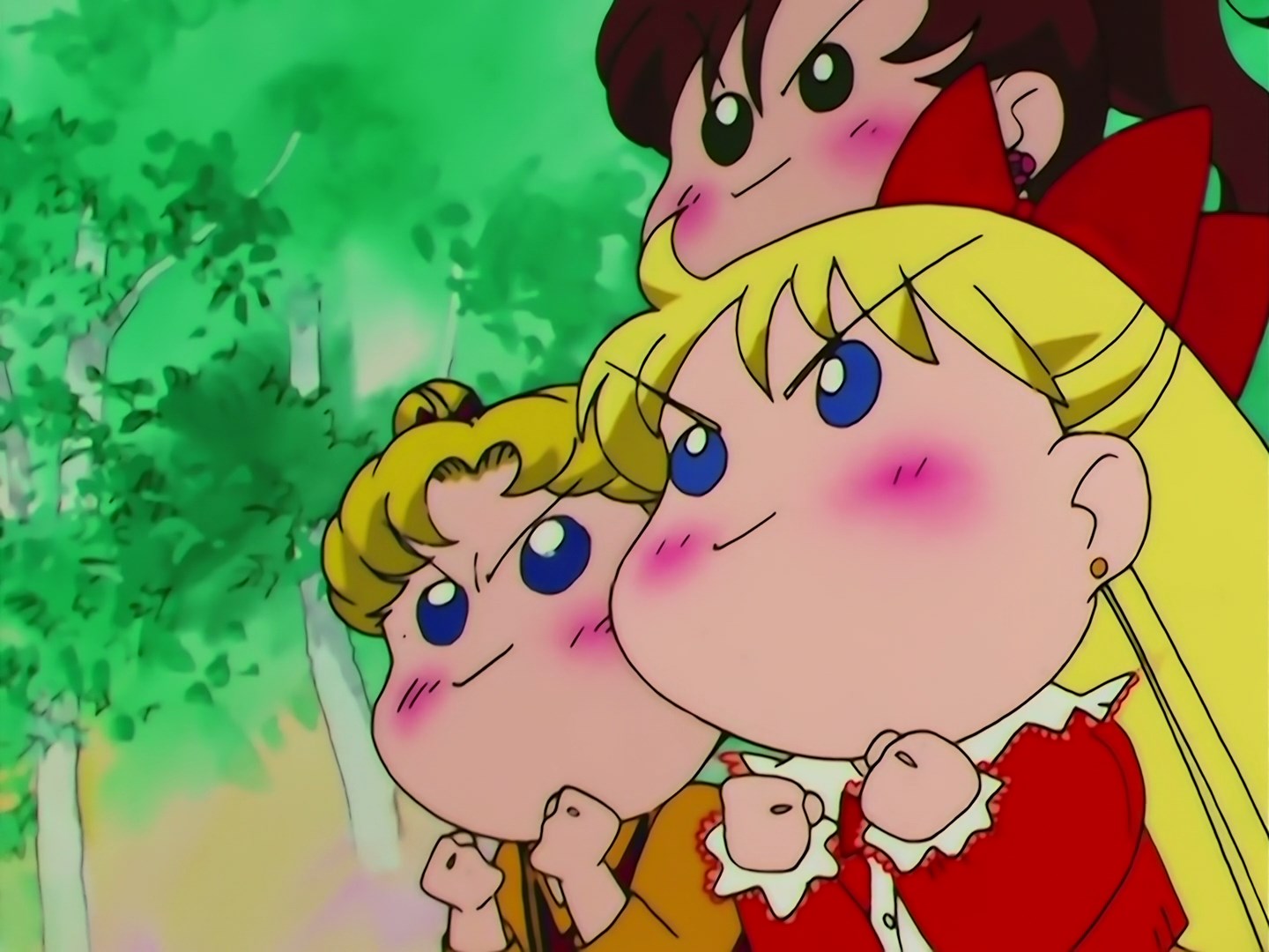 | Postacie występujące w odcinku: | Usagi, Chibiusa, Rei, Ami, Makoto, Minako, Nanako - dziewczynka, która chciała być podobna do Rei, Królowa Nehelenia, Zirconia, Cere Cere, Palla Palla, Ves Ves, Jun Jun, Luna, Artemis, Diana, Manemanemusume - Lemur, Pegaz. |
