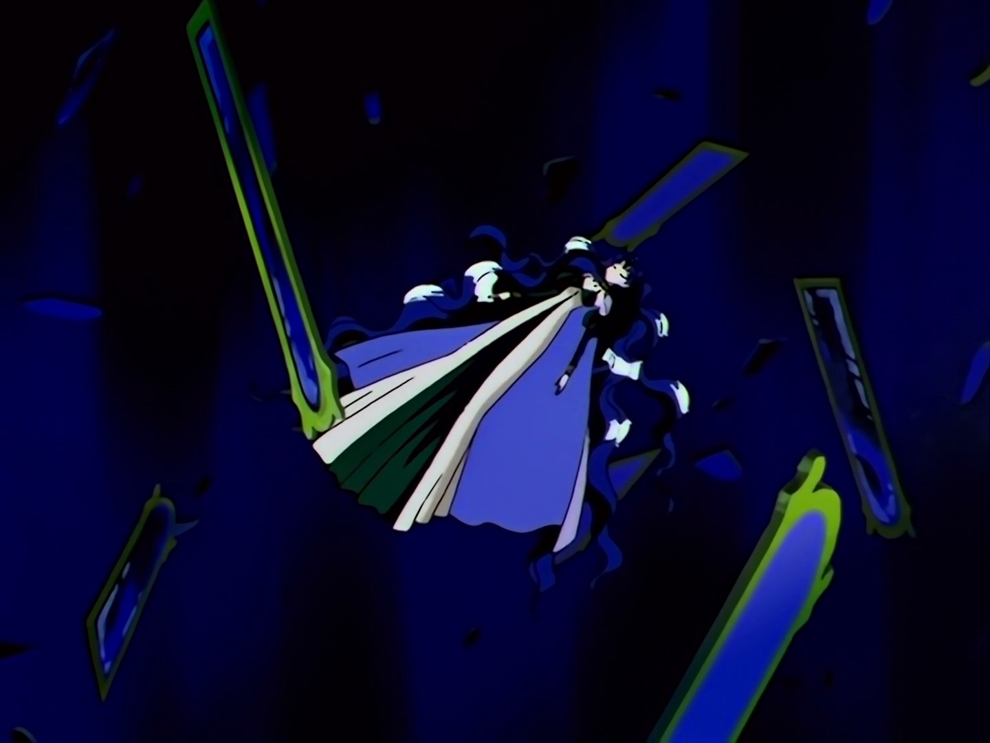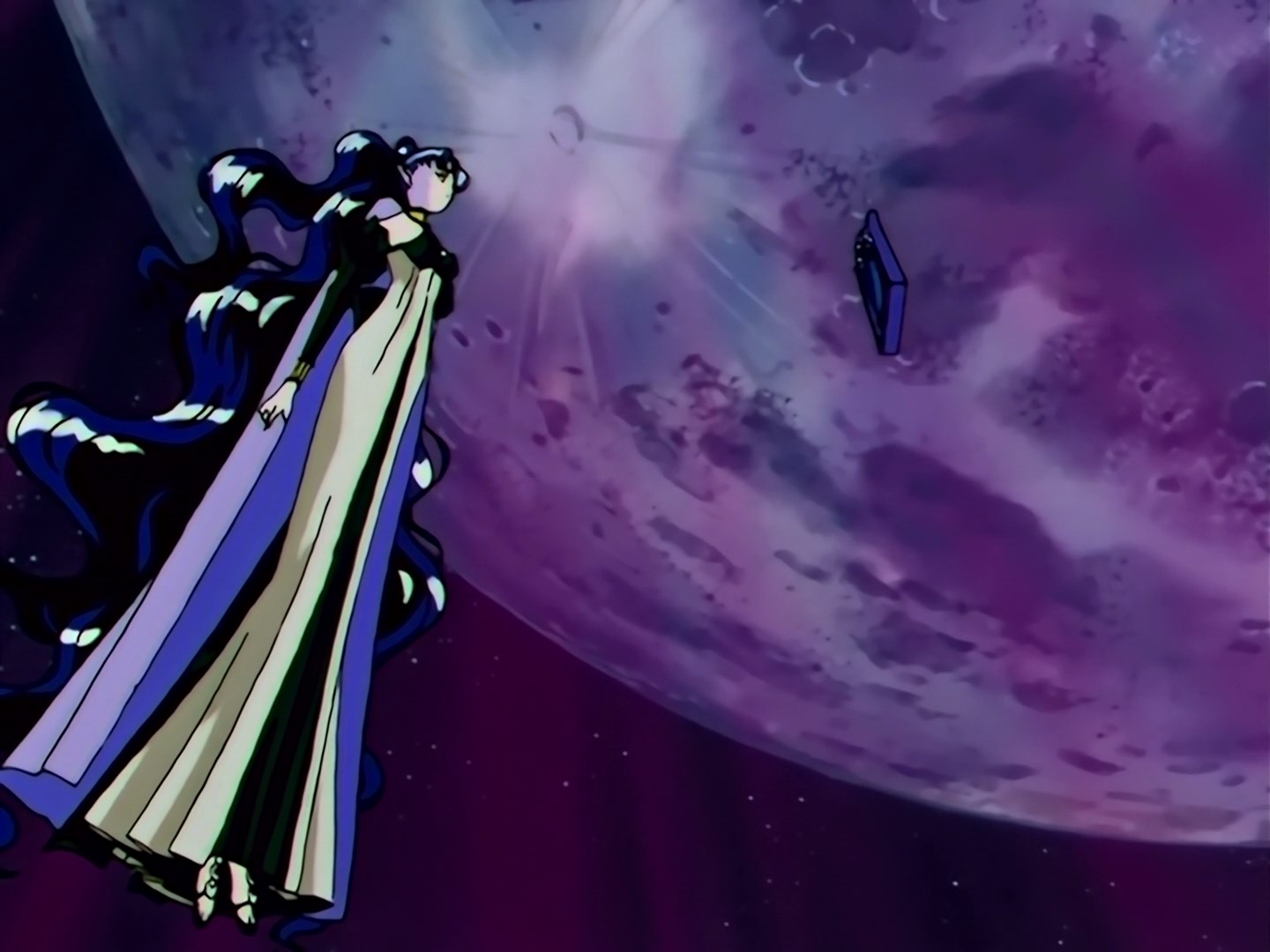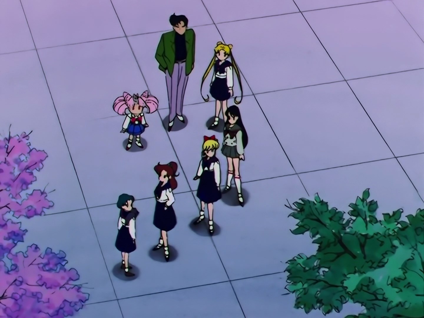 | Postacie występujące w odcinku: | Hotaru, profesor Tomoe, Setsuna, Usagi, Ami, Rei, makoto, Minako, Luna, Artemis, Chibiusa, Mamoru, Diana, Królowa Nehelenia, Haruka, Michiru, Mirror Paredory. |