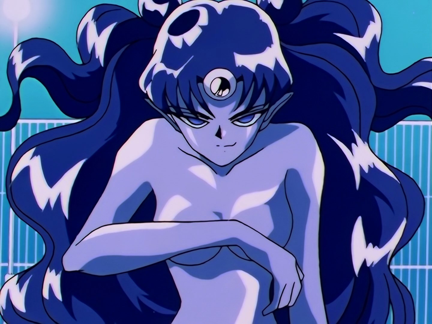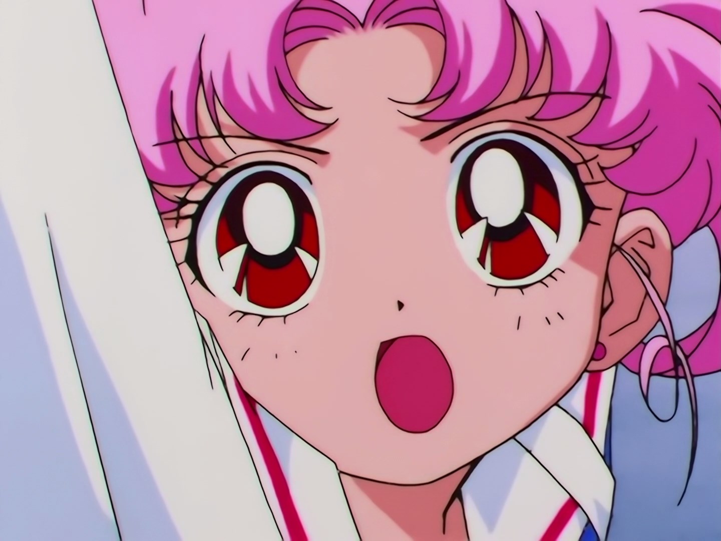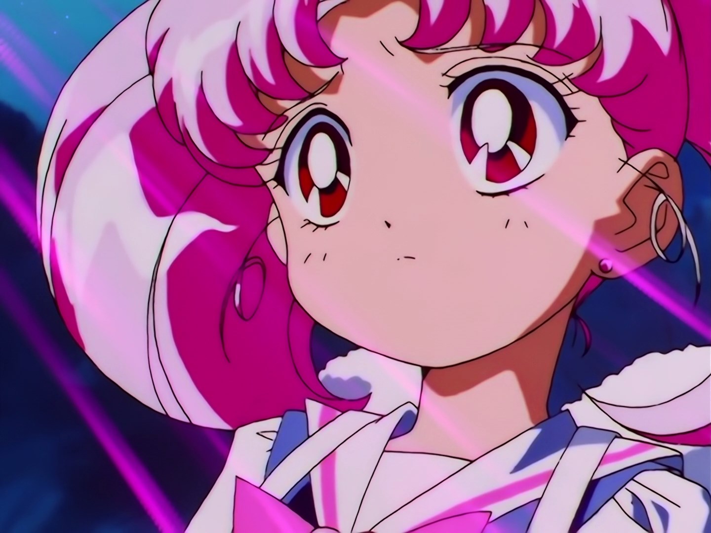 | Postacie występujące w odcinku: | Hotaru, profesor Tomoe, Setsuna, Usagi, Ami, Rei, makoto, Minako, Luna, Artemis, Chibiusa, Mamoru, Diana, Królowa Nehelenia, Haruka, Michiru, Mirror Paredory. |