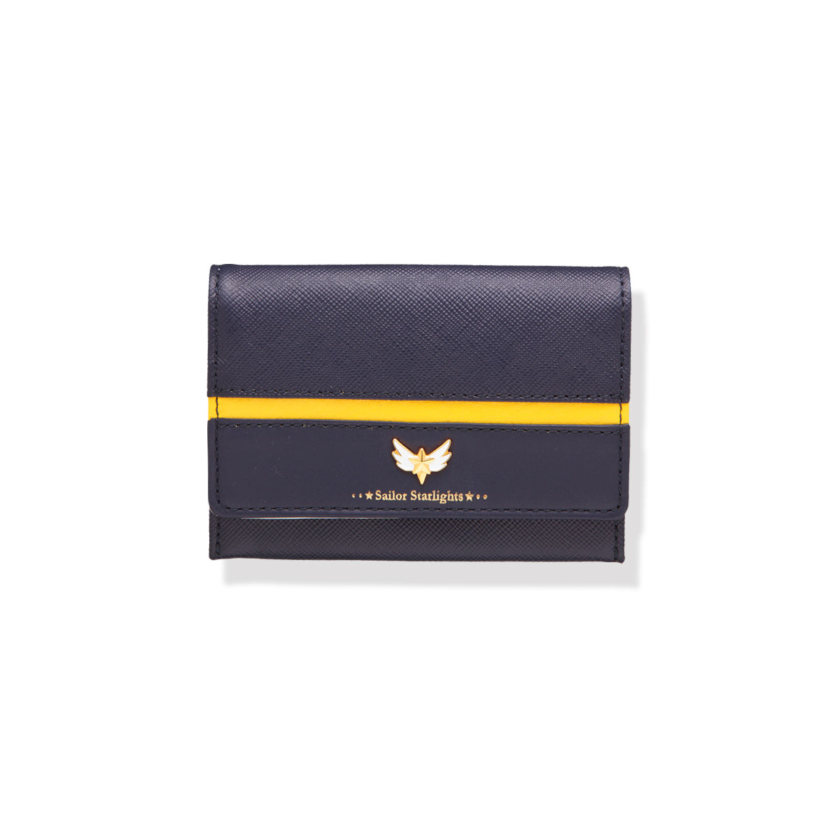 Galanteria skórzana z motywami Sailor Starlights. Galanteria jest w kolorze granatowym z żółtym paskiem i broszką Sailor Starlights. Do kupienia były:
