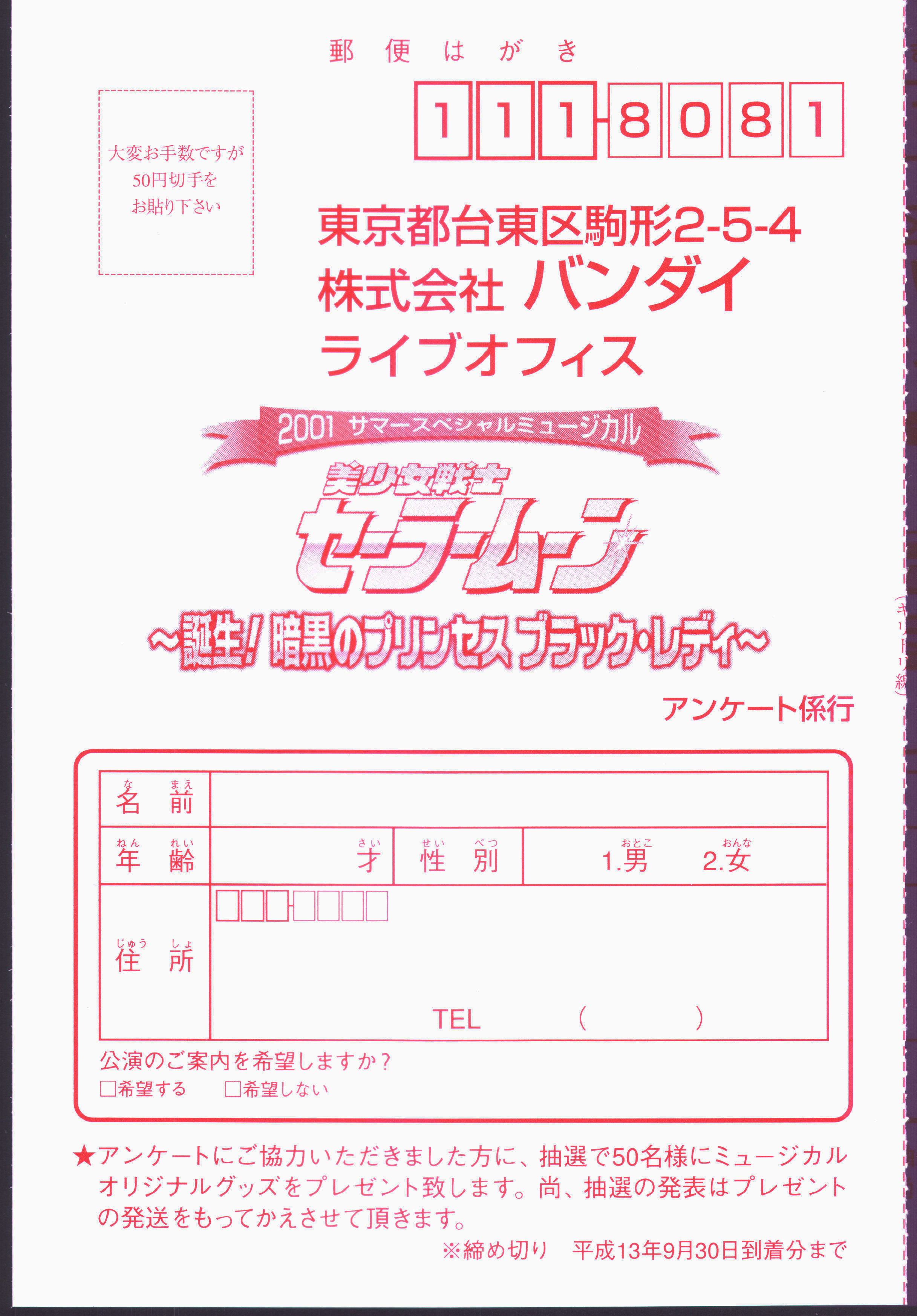 2001 Summer Special Musical Bishoujo Senshi Sailor Moon ~Tanjou! Ankoku no Princess Black Lady~