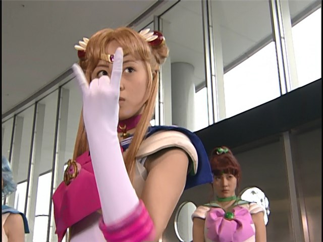 | Postacie występujące w odcinku | Usagi, Ami, Rei, Makoto, Minako, Luna, Minako, Artemis, Kuroki Mio, Ikuko - mama Usagi, Shingo - brat Usagi, Mamoru, Zoisite, Kunzite, Królowa Beryl, Jadeite, Naru, Kanami - koleżanka Usagi, Momoko - koleżanka Usagi, Motoki, Demon. |