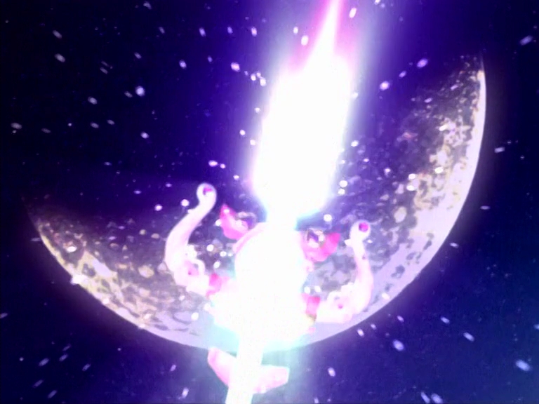 atak Princess Sailor Moon – podczas ataku nie są wypowiadane żadne konkretne słowa. Atak jest stosowany przez Princess Sailor Moon. Nakreśla ona harfą w postaci miecza pentagram, z którego tworzy się wielka kula energii i rzuca ją w kierunku demona. Atak często bywa niekontrolowany i poza faktycznym celem ataku niszczy też inne rzeczy i/lub naraża na niebezpieczeństwo osoby znajdujące się w pobliżu. Użyty w aktach 36, 41-42.