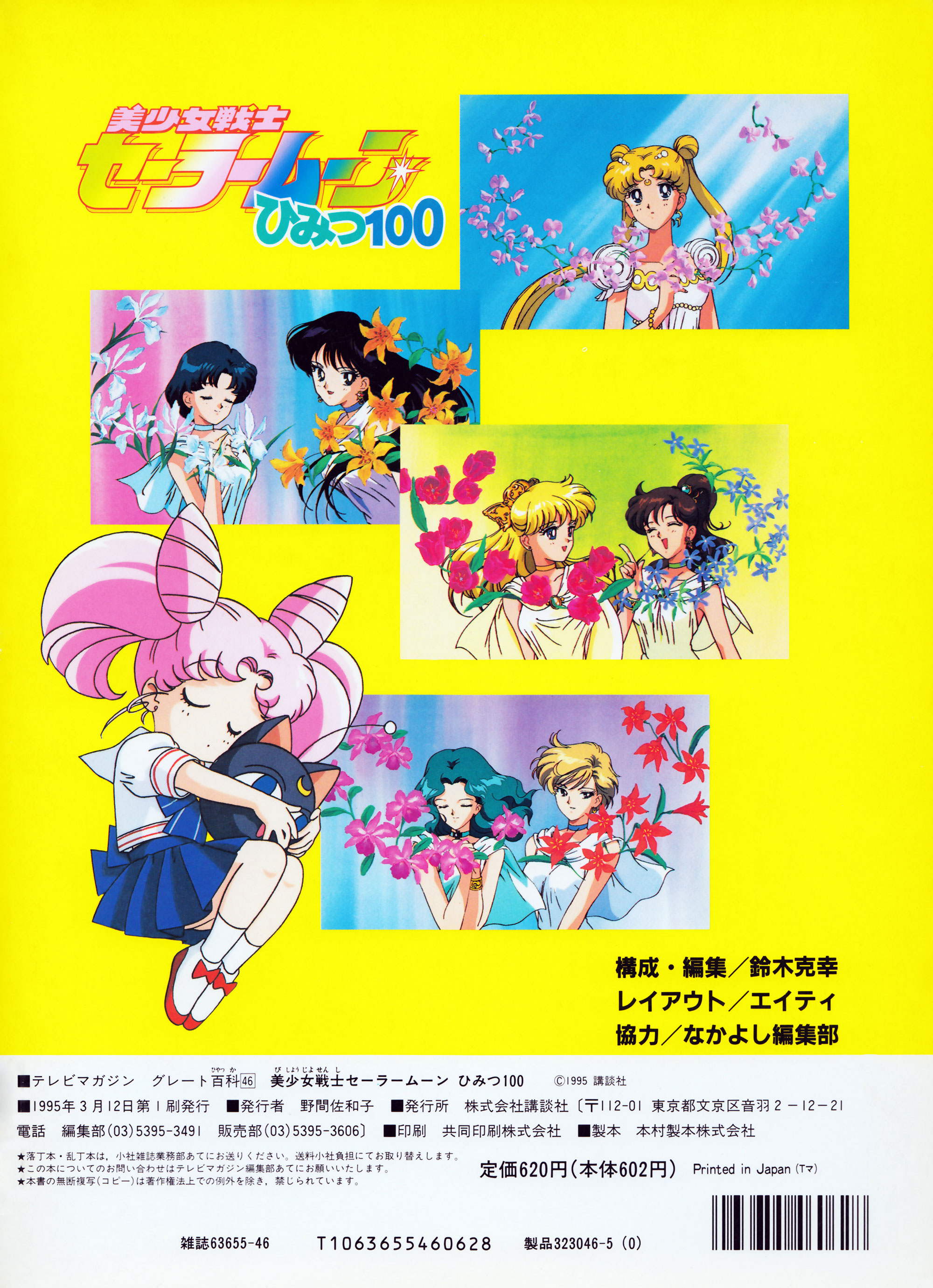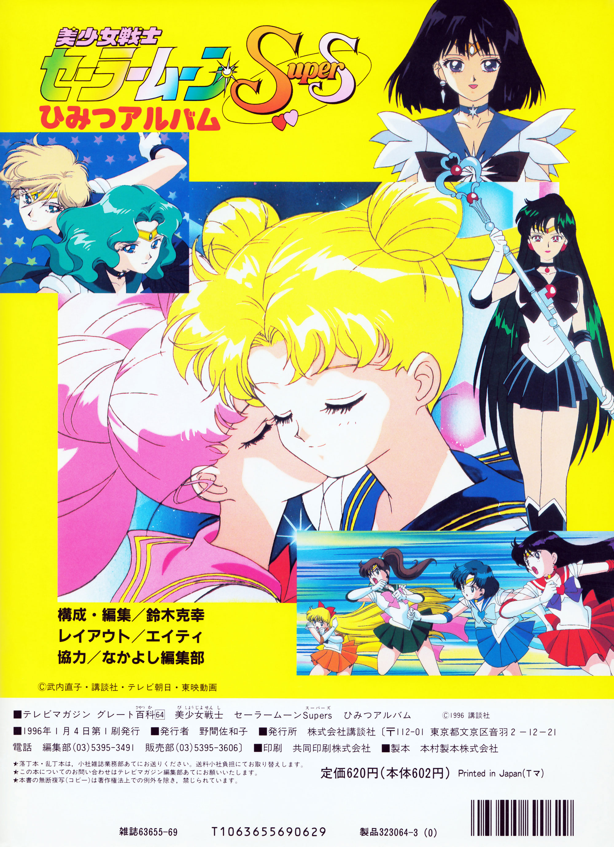 TV Magazine Great Hyakka 46 Bishoujo Senshi Sailor Moon Himitsu 100 (テレビマガジン グレート百科 46 美少女戦士セーラームーン ひみつ100) Data wydania: 12 marca 1995 ISBN: 4-06-323046-5 Cena: 620 jenów Ilość stron: 38 TV Magazine Great Hyakka 64 Bishoujo Senshi Sailor Moon SuperS Himitsu Album (テレビマガジン グレート百科 64 美少女戦士セーラームーンSuperS ひみつアルバム) Data wydania: 4 stycznia 1996 ISBN: 4-06-323064-3 Cena: 620 jenów Ilość stron: 38