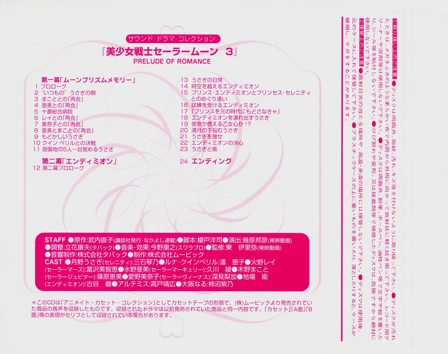 「美少女戦士セーラームーン」 サウンド・ドラマ・コレクション3 PRELUDE OF ROMANCE Bishoujo Senshi Sailor Moon Sound Drama Collection 3 PRELUDE OF ROMANCE Piękna wojowniczka Sailor Moon - Kolekcja słuchowisk 3 Początek romansu |