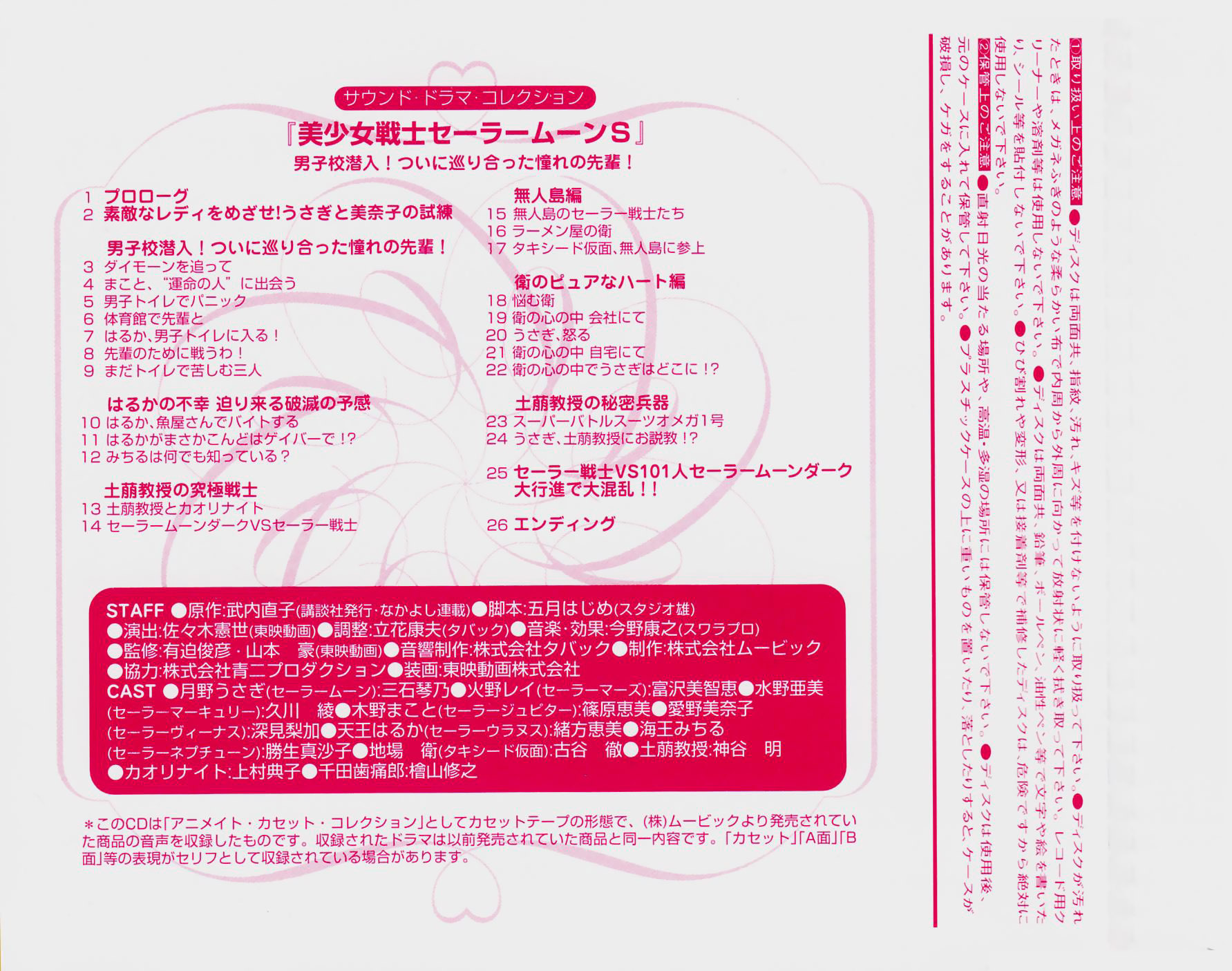 美少女戦士セーラームーンSサウンド・ドラマ・コレクション-男子校潜入! ついに巡り合った憧れの先輩! Bishoujo Senshi Sailor Moon S Sound Drama Collection -Danshikou Sennyuu! Tsui ni Meguriatta Akogare no Senpai! Piękna wojowniczka Sailor Moon S - Kolekcja słuchowisk - Infiltracja szkoły dla chłopców! Długo wyczekiwane spotkanie z senpai'em! |