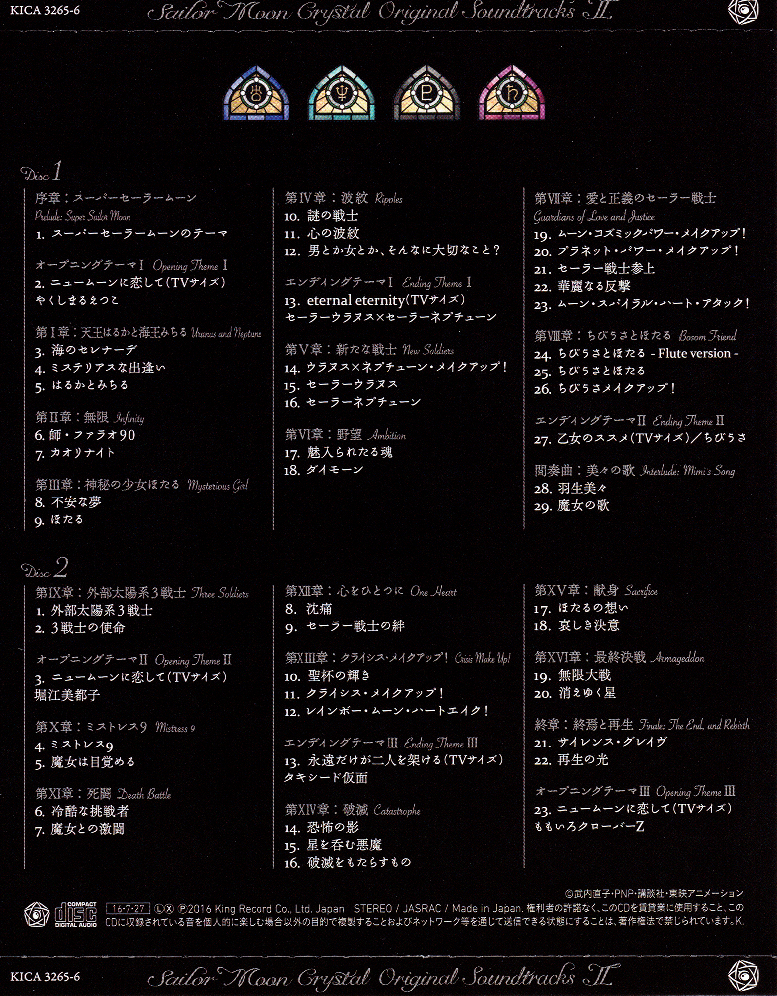 美少女戦士セーラームーンCrystal オリジナル・サウンドトラック II Bishoujo Senshi Sailor Moon Crystal Original Soundtrack II Piękna wojowniczka Sailor Moon Crystal Oryginalna ścieżka dźwiękowa II |
