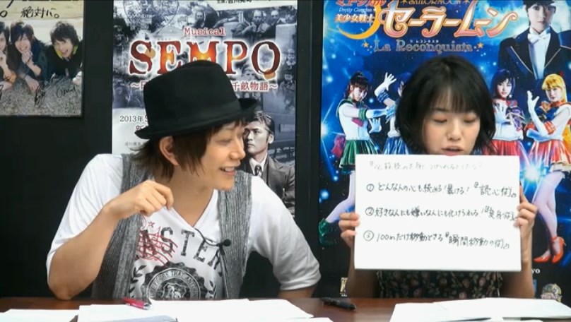 Gośćmi programu były aktorki grające w musicalu La Reconquista. Były to: Takahashi Yu (Jupiter), Koro (Nephrite), Matsuura Miyabi (Mercury) oraz Saika Ryo (Zoisite). Dziewczyny opowiadały o relacjach między sobą tworzeniu musicalu oraz odpowiadały na pytania. Pokazano fragment Animelo Summer Live. Pokazano kilka gadżetów musicalowych.