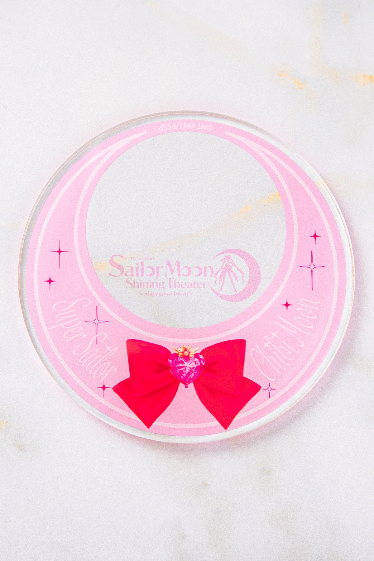 Moon z pomponem w kolorze jasnego różu i zawieszką w kształcie broszki Chibi Moon Compact. Do każdej zawieszki doczepione są po dwie białe perełki. Cena za sztukę to 2640 jenów (ok. 62 zł). W stacjonarnym Sailor Moon Store i na stoiskach