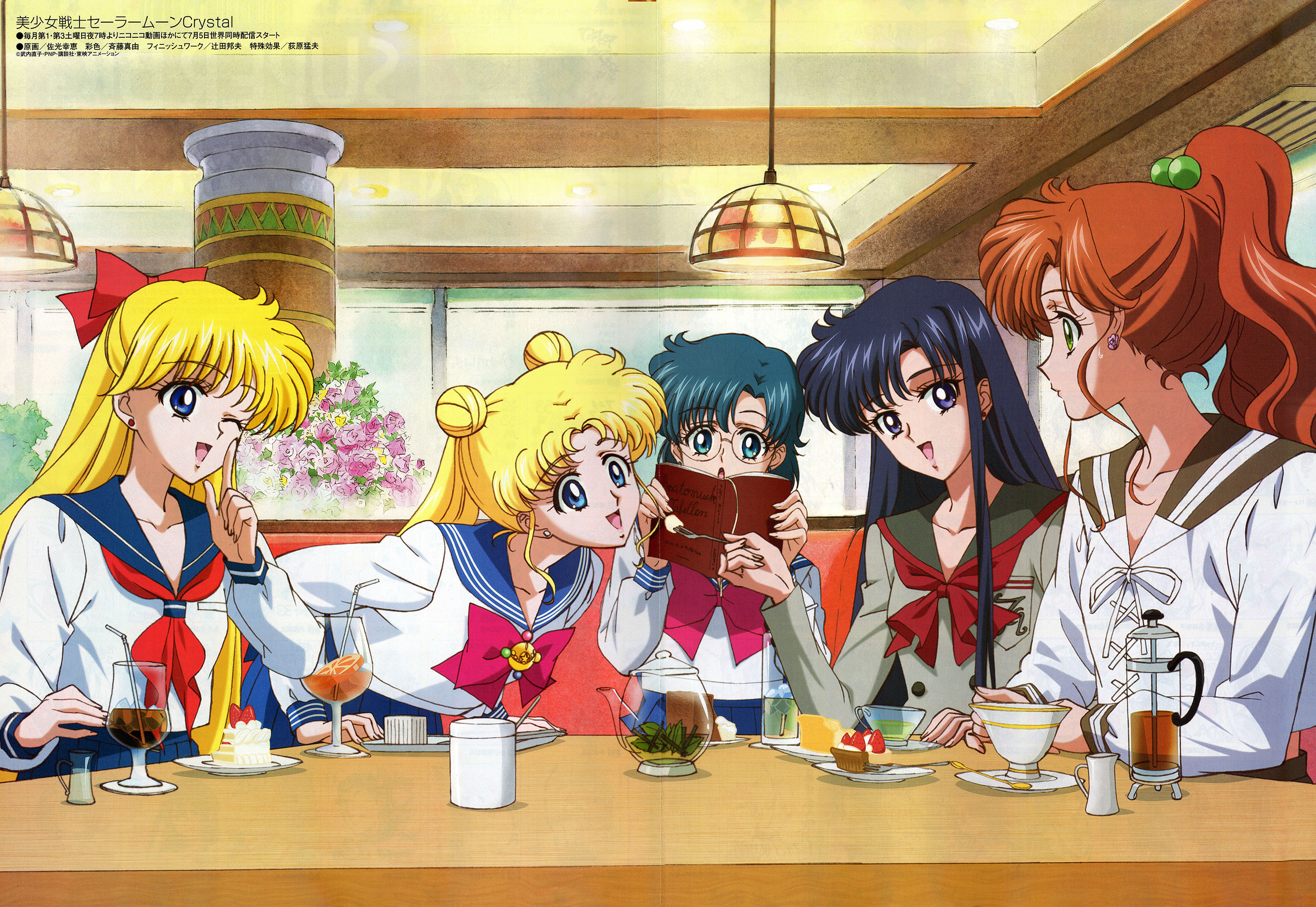 Ostatnio w magazynach Animage i Animedia na lipiec 2014 pokazały się artykuły wraz z grafikami na temat nowego anime Sailor Moon Crystal. Część z tych grafik pokazywałam już wcześniej. W Animedia jest rozkładany plakat, na którym dziewczyny siedzą w kawiarni,