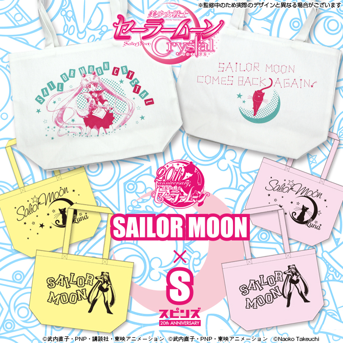 Crystal we współpracy ze Spinns. Sailor Moon Crystal będą poświęcone 2 torby, a starej serii 4. Jest to limitowana współpraca i torby mają być dostępne tylko przez kilka dni. Będą też sprzedawane w dwóch innych sklepach KOHRINBO109