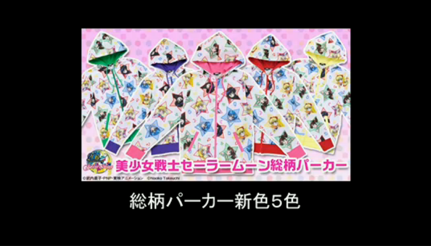 Wcześniej różowa bluza była już dostępna w sprzedaży, tym razem do kupienia jest pięć sztuk w kolorach inner senshi. Te same bluzy nosiły również Momoiro Clover Z na koncercie MTV. Rozmiar jest tylko jeden, damskie M. Wymiary to: długość 65 cm, ramiona