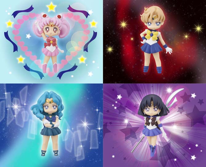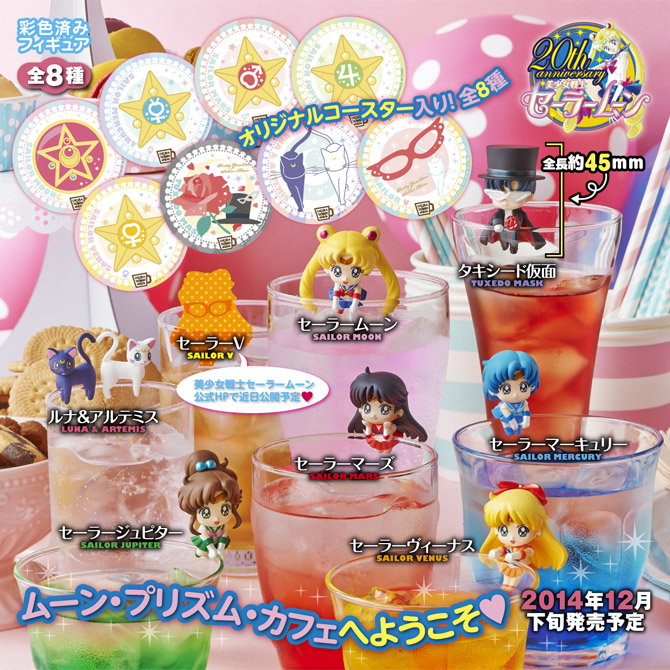 Do uzbierania będzie 8 różnych figurek do ozdabiania szklanej i kubków. Na cały komplet składają się wojowniczki, Sailor V, Tuxedo Kamen i koty. W pudełkach z figurkami będą również podkładki pod szklanki, również 8 różnych wzorów. Figurki są produkowane przez Megahouse, więc tak samo jak w przypadku Petit Chara w pudełku mają być losowo wybrane figurki.