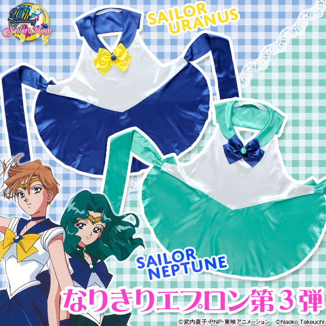 Kolekcja fartuszków, które mają wyglądać jak mundurki wojowniczek, powiększa się o kolejne dwa, tym razem są to wzory Sailor Uranus i Sailor Neptune. Materiał to 100% poliestru, wstążki do wiązania mają 73 cm, sam fartuszek jest długości 87 cm. Cena to