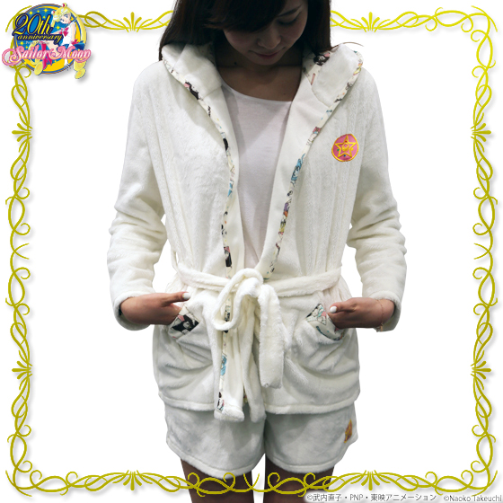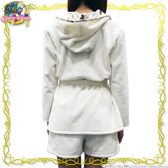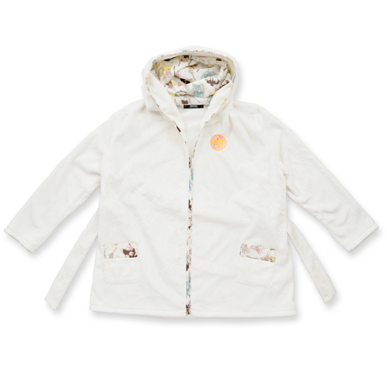 Krótki szlafrok/podomka z kapturem, wykonany tak samo jak biała bluza i spodenki, można używać jako część kompletu. Cena 8640 jenów (ok. 263 zł).