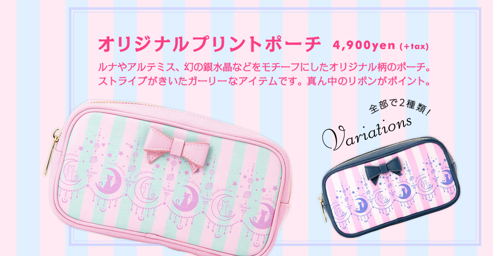 do przemiany z serii Crystal. Kosmetyczki są dodatkowo laminowane na zewnątrz. Duża kosmetyczka ma wymiary 205 x 135 x 135 mm i kosztuje 3780 jenów (ok. 120 zł). Mała kosmetyczka ma wymiary 100 x 190 x 20 mm i kosztuje 1296 jenów (ok.