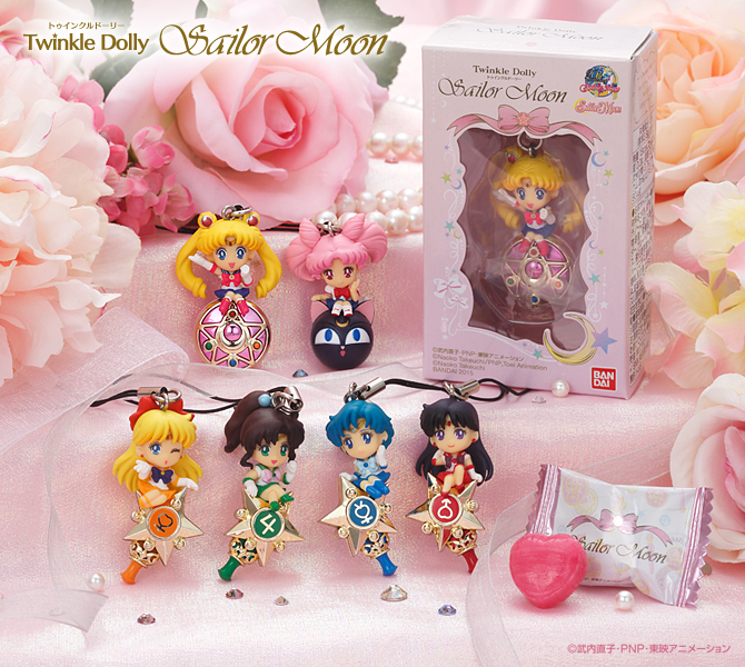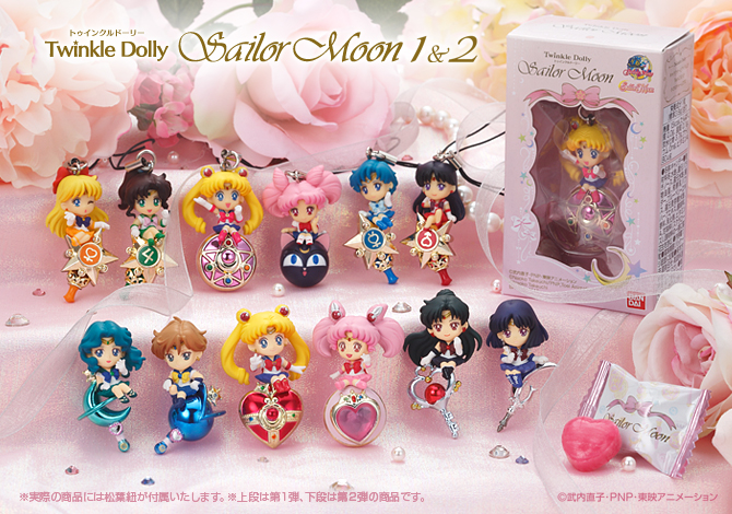 Zawieszki gashapon pojawiły się w tym miesiącu w automatach. Do uzbierania jest siedem sztuk, 5 wojowniczek, Tuxedo Kamen i Księżniczka Serenity. Cena za kapsułkę to 300 jenów (ok. 9 zł).