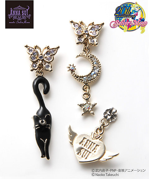 5. Kolczyki z kotami - cena: 19980 jenów (ok. 643 zł); długość: 4,5 cm w tym sama zawieszka z kotem 3,5 cm; na jednym kolczyku jest kot, z jednej strony biały, a z drugiej czarny, a na drugim kolczyku jest księżyc z gwiazdką, do zatyczki do wkrętu przywieszona jest zawieszka z serduszkiem.