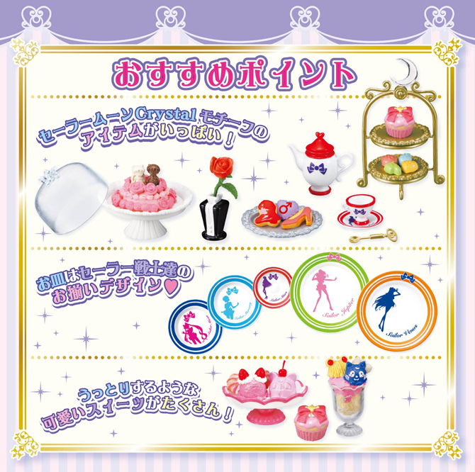 Firma Re-ment, która produkuje miniaturowe repliki, wypuści 8 kolejnych zestawów. Poszczególne zestawy będą poświęcone pięciu wojowniczkom, Mamoru i Chibiusie, ostatni zestaw będzie służył do urządzenia wspólnego przyjęcia. Na razie nie wiadomo jeszcze, jak będą wyglądać poszczególne zestawy i co będą zawierały. Cena za zestaw to 600 jenów (ok. 19 zł), w sklepach pojawią się 27 lipca.