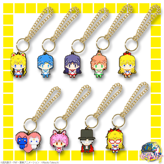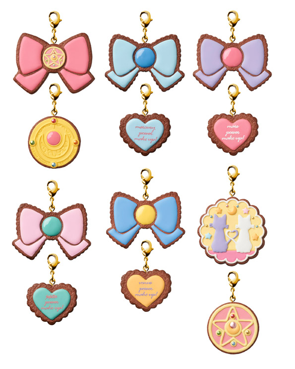 Do uzbierania jest kilka różnych gadżetów. Na początek dziewięć różnych gumowych breloków, każdy z inną wojowniczką, w tym z Sailor V i Chibi Moon, a także z Tuxedo Kamen i z kotami. Cena za sztukę to 756 jenów (ok. 24 zł). Każda zawieszka jest wielkości 55 mm.