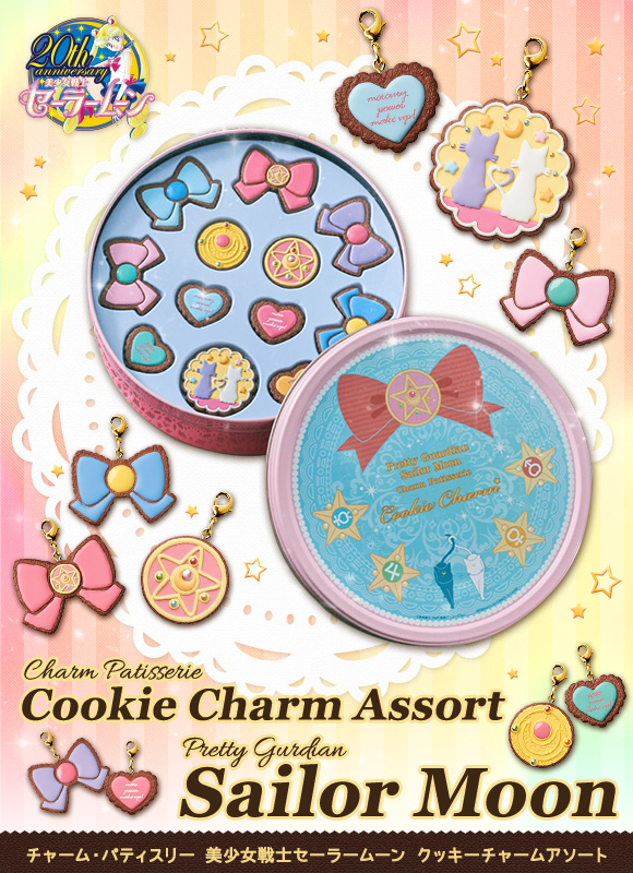 Zawieszki imitujące ciastka będzie można kupić również w zestawie. Cały zestaw będzie zapakowany tak, aby przypominał pudełko z ciastkami. Same zawieszki również zostały trochę zmienione, karabińczyki są teraz w złotym kolorze, a nie w srebrnym, "ciasteczka" są jakby bardziej wypieczone, bo mają ciemniejszy kolor, a lukrowe ozdoby mają miejscami inne odcienie, na zawieszkach w kształcie serduszek zamiast symboli planet znajdują się słowa przemiany poszczególnych wojowniczek. Jutro rozpoczyna się przedsprzedaż na Premium Bandai, a wysyłka nastąpi w czerwcu. Cena to 3000 (ok. 93 zł) + podatek.