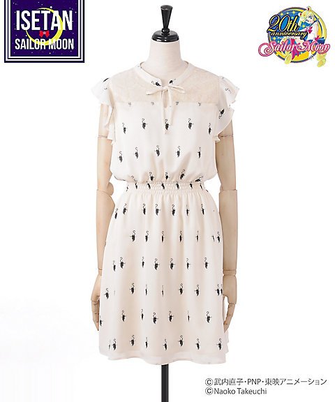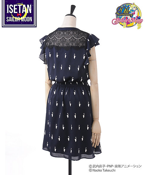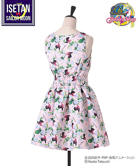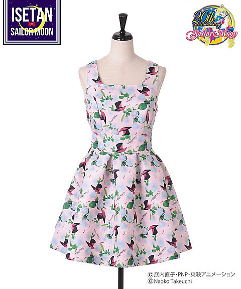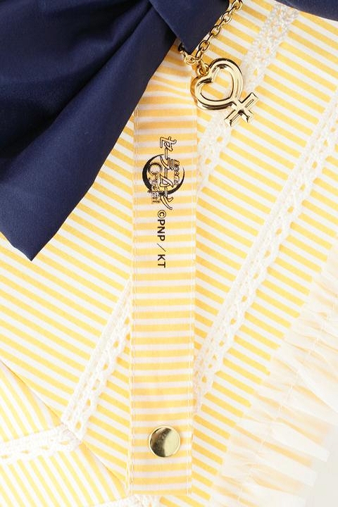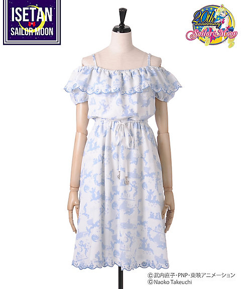 4. Sougara One-piece - cena: 21600 jenów (ok. 691 zł); kolory: biały i błękit saski; długość: 95 cm; sukienka z nadrukiem z Serenity i Kryształowym Pałacem, wstążka w pasie ma na końcach zawieszki w kształcie broszki Cosmic Heart Compact.