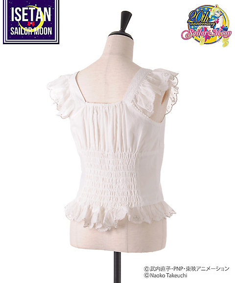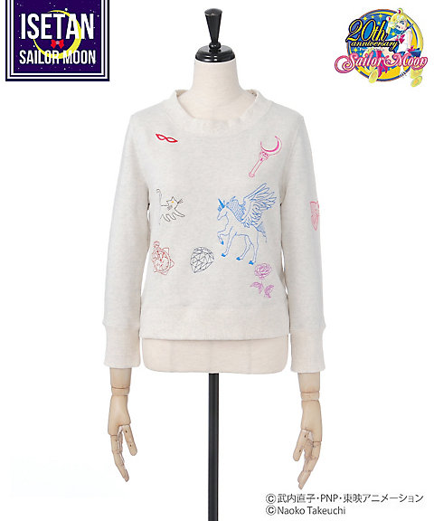6. Icon Embroidery Sweat Tops - cena: 21600 jenów (ok. 691 zł); kolory: jasnobeżowy i szary; długość 51 cm; bluzy z kołnierzykiem z organzy, który jest odpinany i wyszywanymi motywami z Sailor Moon.