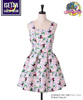 2. Printed One-piece Dress - cena: 21600 jenów (ok. 696 zł); kolory: różowa i kremowa; materiał: poliester 100%; długość 81 cm; krótka sukienka na szerokich ramiączkach z nadrukiem w róże i cylindry.
