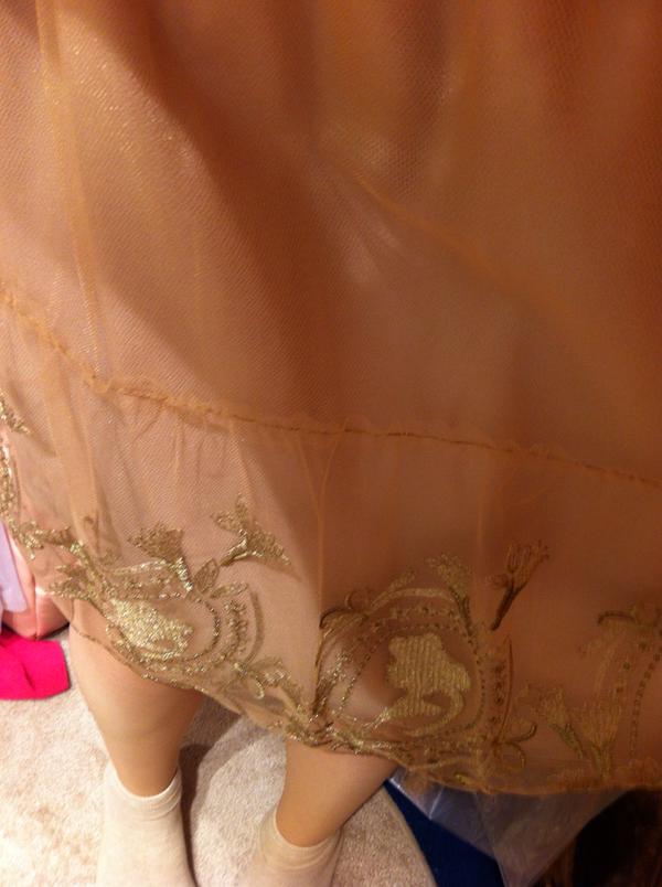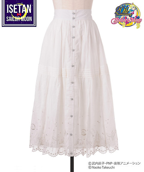 4. Albert Guegain Lace Skirt - cena: 49680 jenów (ok. 1590 zł); kolor: beżowy; długość 53 cm; spódnica z haftowanym tiulem na wierzchu, wzór na hafcie jest wykonany przez najstarszą francuską pracownię zajmującą się haftem i przedstawia profil Sailor Moon i broszkę Crystal Star.