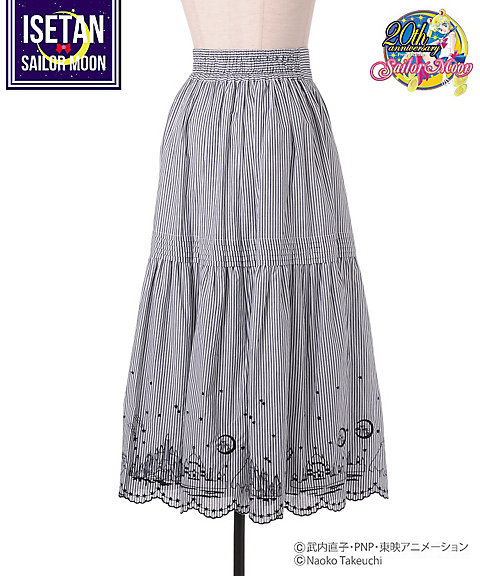 3. Chara Silhouette Pattern Long Skirt - cena: 17280 jenów (ok. 553 zł); kolory: biały i w czarne paski; długość: 85 cm; długa spódnica do kompletu do poprzedniej bluzki, na dole spódnicy haftowane motywy związane z Kryształowym Tokio i Srebrnym Milenium.