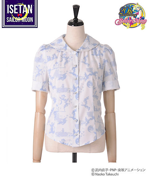 5. Sougara Blouse - cena: 14040 jenów (ok. 449 zł); kolory: biały i błękit saski; długość: 50 cm; bluzka z krótkim rękawem z tym samym wzorem, co sukienka powyżej.