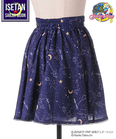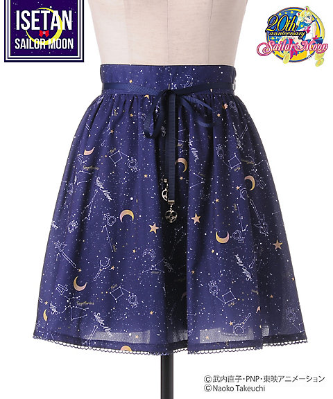 2. Constelation Culottes - cena: 14040 jenów (ok. 453 zł); kolory: granatowy; materiał: 100 % poliester; długość 46 cm; spódnica z nadrukiem konstelacji, magicznych przedmiotów i symboli planet.