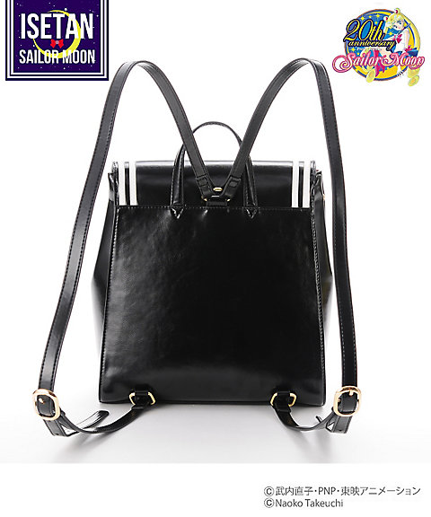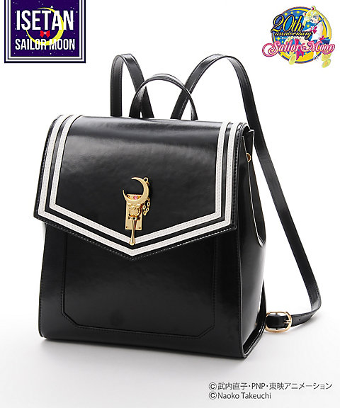 6. Moonstick Rucksack - cena: 30240 jenów (ok. 975 zł); materiał: denim (bawełna 60% i poliester 40 %), sztuczna skóra: poliester 45% i 55% poliuretan; wymiary: 25 x 26 x 12 cm; kolory: czarny i morski; plecak z zapięciem w kształcie Księżycowej Pałeczki i klapą w kształcie marynarskiego kołnierzyka.