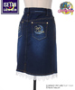 4. Denim Skirt - cena: 17280 jenów (ok. 557 zł), materiał: bawełna 100%, poliester 100% (koronka); rozmiary: S i M; spódnica dżinsowa prosta obszyta koronką na dole.