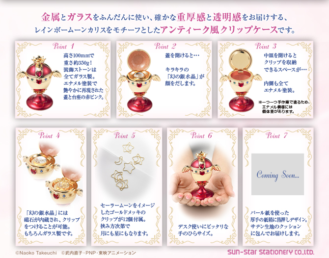 Jest to pojemnik na spinacze ze spinaczami w środku w kształcie Rainbow Moon Chalice. Pojemnik jest metalowy, pomalowany emalią i ozdobiony szklanymi kamykami. Po podniesieniu wieczka mamy ozdobę w kształcie Srebrnego Kryształu Iluzji, po podniesieniu