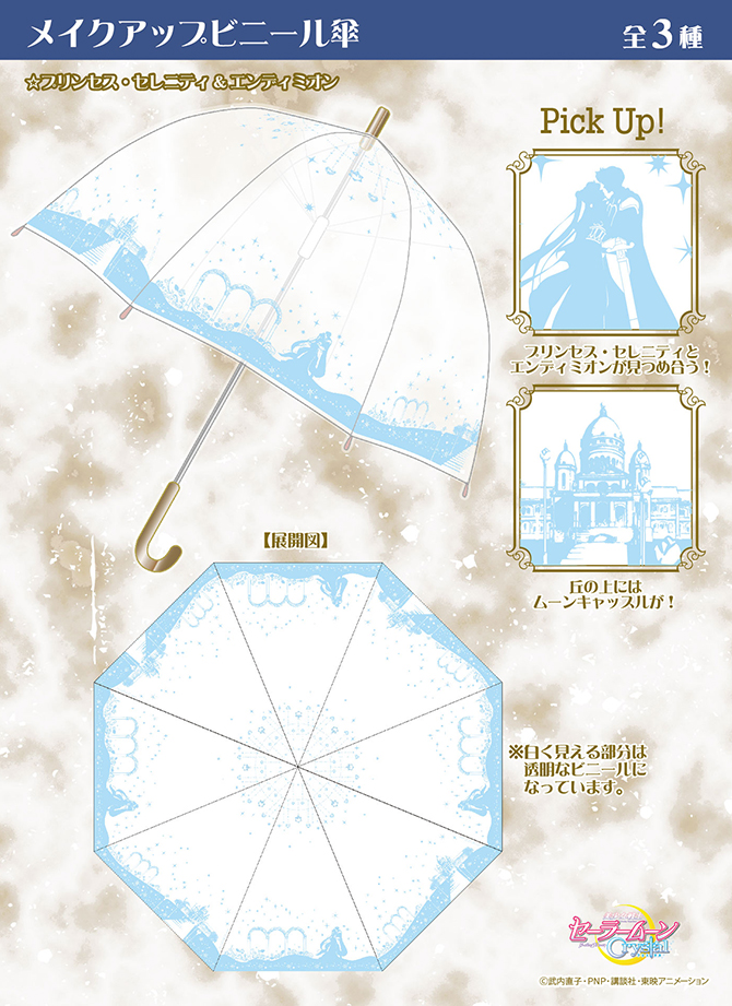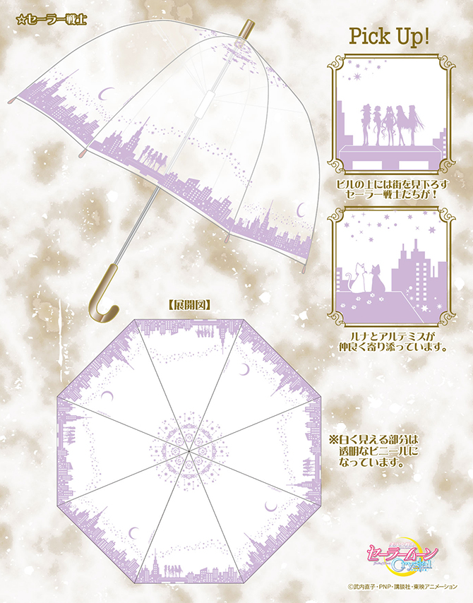 Pojawią się kolejne parasolki. Te są dużo tańsze niż poprzednie, bo będą kosztować 1500 jenów za sztukę (ok. 47 zł). Parasolki są plastikowe i przezroczyste, na brzegach mają wzór z sylwetkami postaci. Po rozłożeniu mają 100 cm średnicy. Do wyboru są