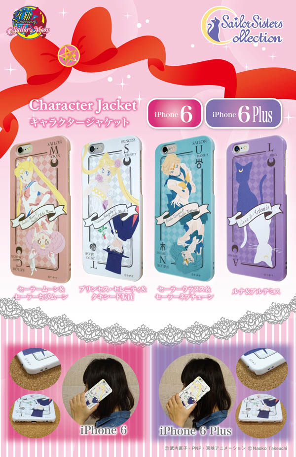 Wśród gadżetów pojawiły się kolejne obudowy na iPhony. Do wyboru są 4 wzory inspirowane kartami do gry: Sailor Moon+Chibi Moon, Serenity+Tuxedo Kamen, Uranus+Neptune i Luna+Artemis. Obudowy na iPhona 6 kosztują 2160 jenów (ok. 68 zł), a na 6 Plus 2462