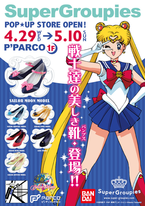 Efektem kolejnej współpracy są buty. Wybierać będzie można spośród 6 różnych par powiązanych tematycznie z inner senshi i z Luną. Buty inspirowane wojowniczkami to czółenka na niewielkim obcasie, a buty inspirowane Luną to baletki. Buty Sailor Moon, Jupiter