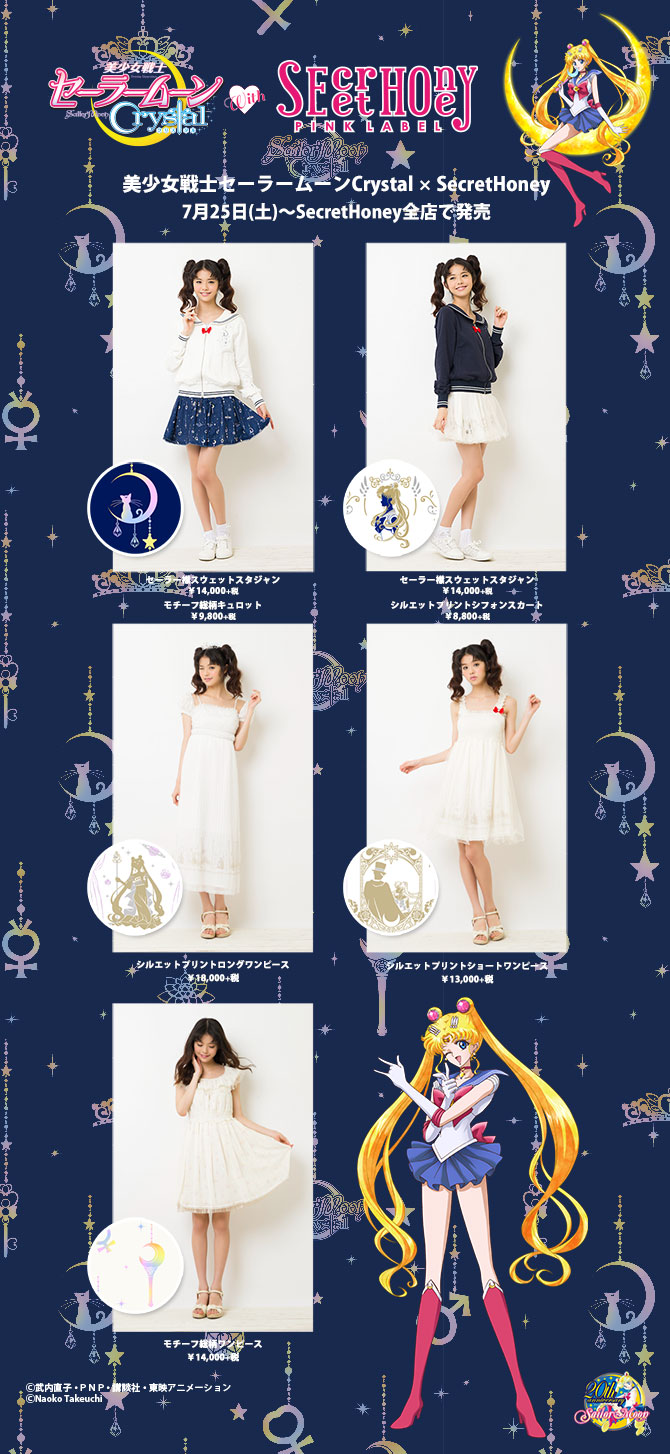 Pod marką Tokyo's Tokyo pojawią się koszulki i torby. Dwa wzory na koszulkach będą przedstawiać pikselowe Kryształowe Tokio i wojowniczki. Trzeci wzór to zbiór magicznych przedmiotów z serii Crystal, który będzie występował na koszulkach i torbach w trzech