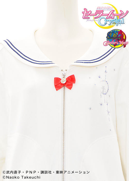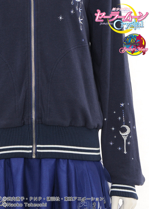 Bluzy są dostępne w kolorach białym i granatowym. Mają marynarski kołnierzyk, a na ekspresie zawieszkę z kokardą i są wyszyte w motywy Luny, Moon Stick i Crystal Star. Rozmiar uniwersalny. Cena za sztukę to 15120 jenów (ok. 461 zł).