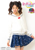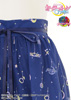 Druga spódniczka jest krótsza i ma nadruk z magicznymi przedmiotami i znakami planet. Do wyboru kolory biały i granatowy. W pasie zawiązywana tasiemką z przywieszkami na końcach. Rozmiar M, cena 10584 jeny (ok. 322 zł).