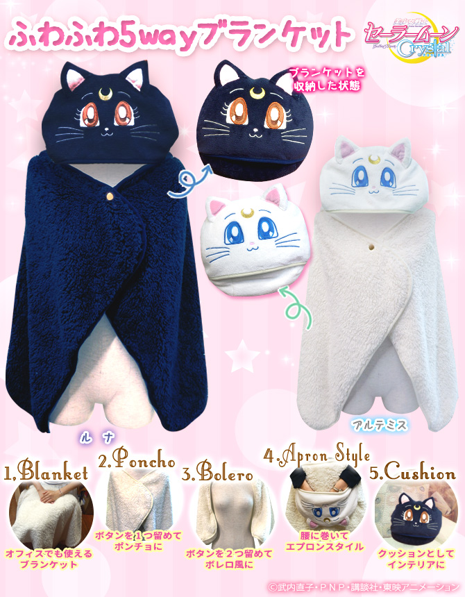 Ostatni gadżet też jest wielofunkcyjny, jest to koc chowany w poszewce w kształcie głowy Luny. Może służyć jako poduszka, a w razie potrzeby ze środka można wyjąć koc. Wymiary to 35 x 37 cm. Cena to 4536 jenów (ok. 138 zł).