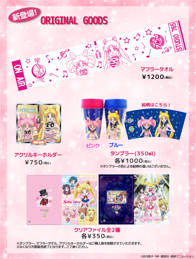 Reszta to zupełnie nowe gadżety i wszystkie mają wzory z Usagi i Chibiusą ze słuchawkami. Ręcznik jest podłużny, biały z różowym nadrukiem. Cena to 1200 jenów (ok. 37 zł). Brelok jest akrylowy z kolorową ilustracją, cena to 750 jenów