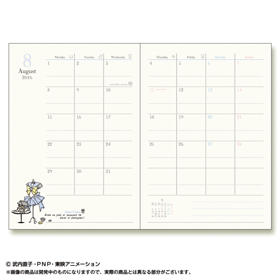 Terminarz będzie miał format B6 (160 x 200 x 20 mm) i 192 strony. Od 30 lipca można go zamawiać na Premium Bandai. Cena za sztukę to 3942 jeny (ok. 120 zł), wysyłka nastąpi na koniec grudnia.